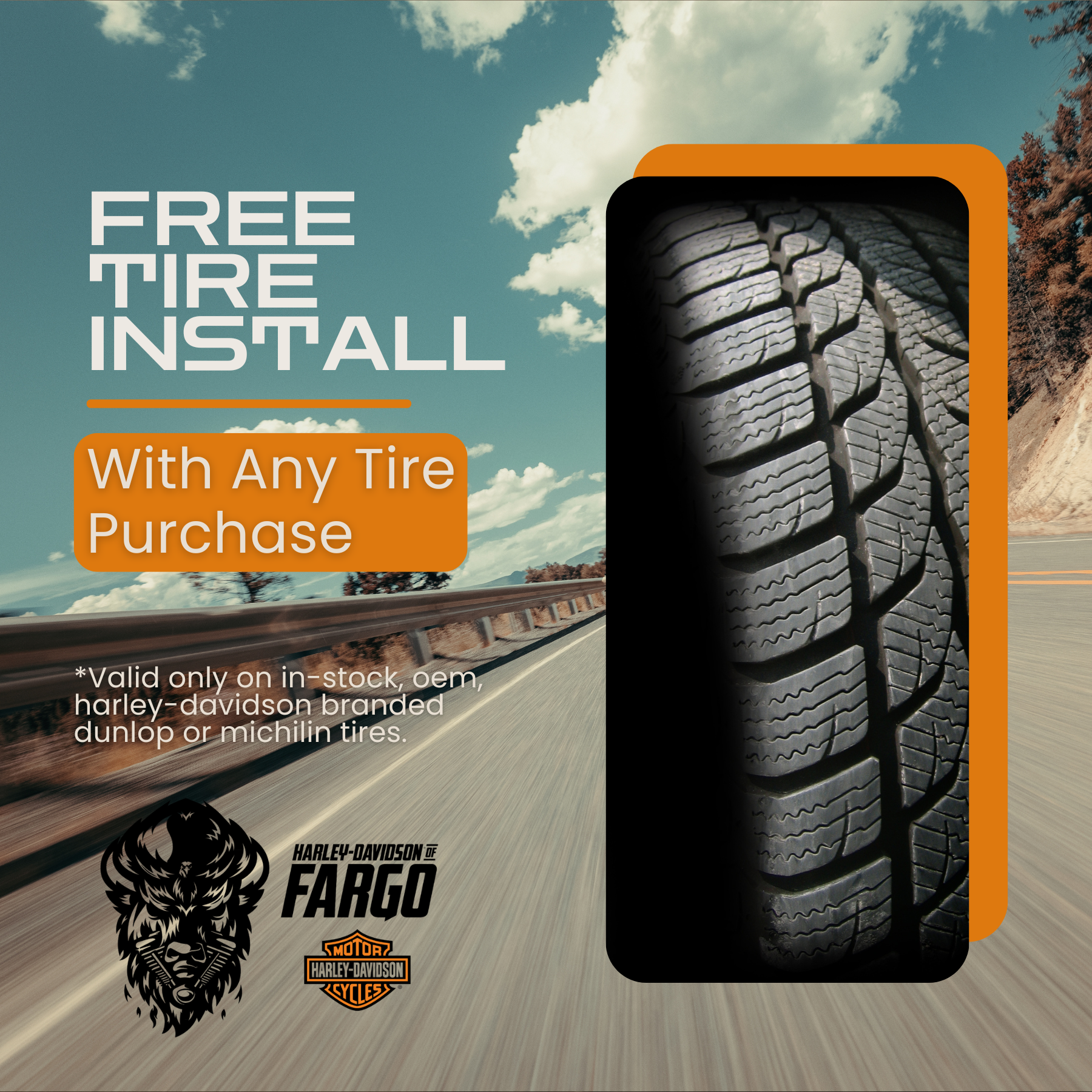 Get FREE Tire Installation with any tire purchase at Harley-Davidson of Fargo. * Stop in & visit our Service Department or give us a call at 701-277-1000 to schedule your appointment!